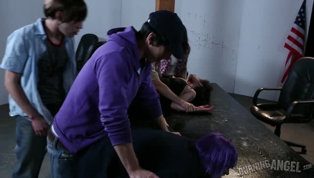 3 on 1 first dap, 6 cumshot, swallow with puke reflex, clear gape for Angie Cocks